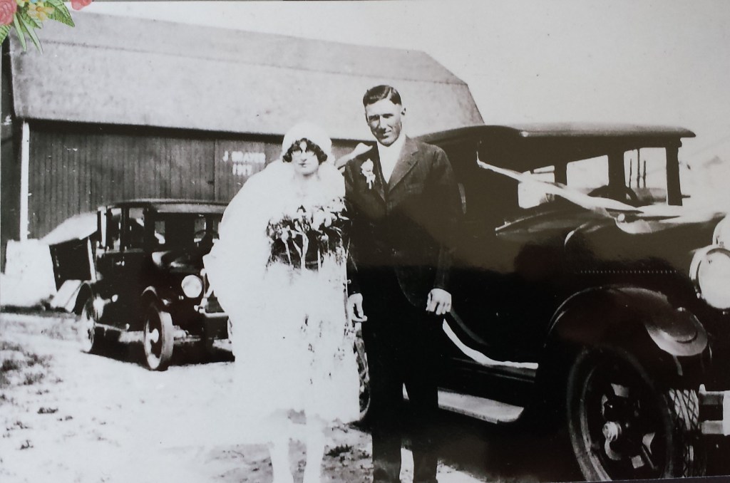 In the photo above is my Aunt Mary who is the oldest child in the Calumet picture above. You can see behind them there the Brayer name hand painted on the barn.
